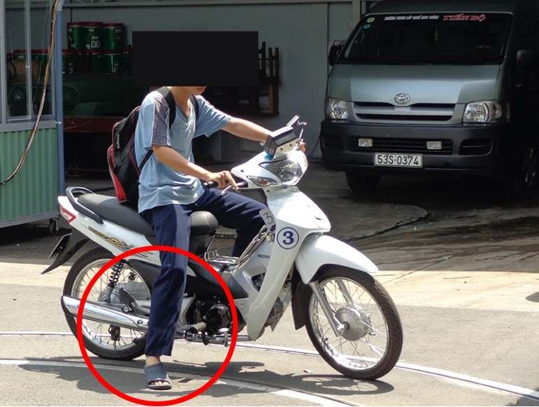 Khi thực hành bài thi vòng số 8, có một số khúc cua. Các bạn nữ tay lái yếu, dễ bị nghiêng xe, và cuối cùng phải chống chân xuống đất để không bị ngã. Đối với mỗi lần chống chân như vậy, bạn sẽ bị trừ 5 điểm. Hầu hết trường hợp chống chân là do không tự tin vào khả năng của mình, dẫn đến run, không kiểm soát tốt.